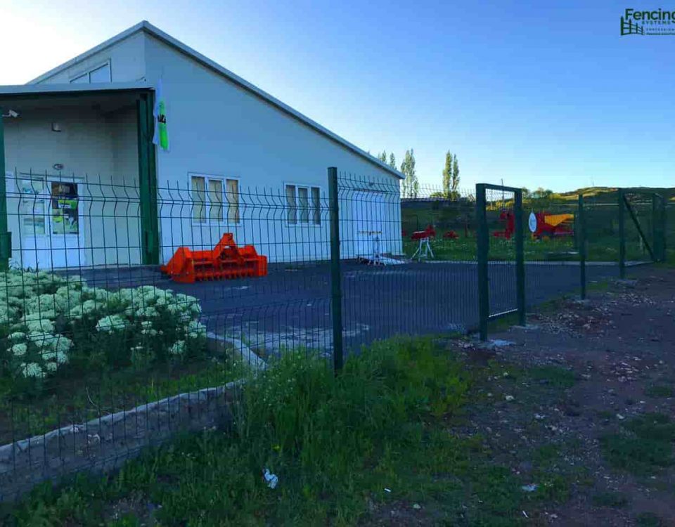 Ограждение периметра выполнено 3D панелями из оцинкованной стали специально для Центра развития сел и агробизнеса (CARD). Установлен 3D забор, из того же материала сделаны ворота. До этого было выполнено.